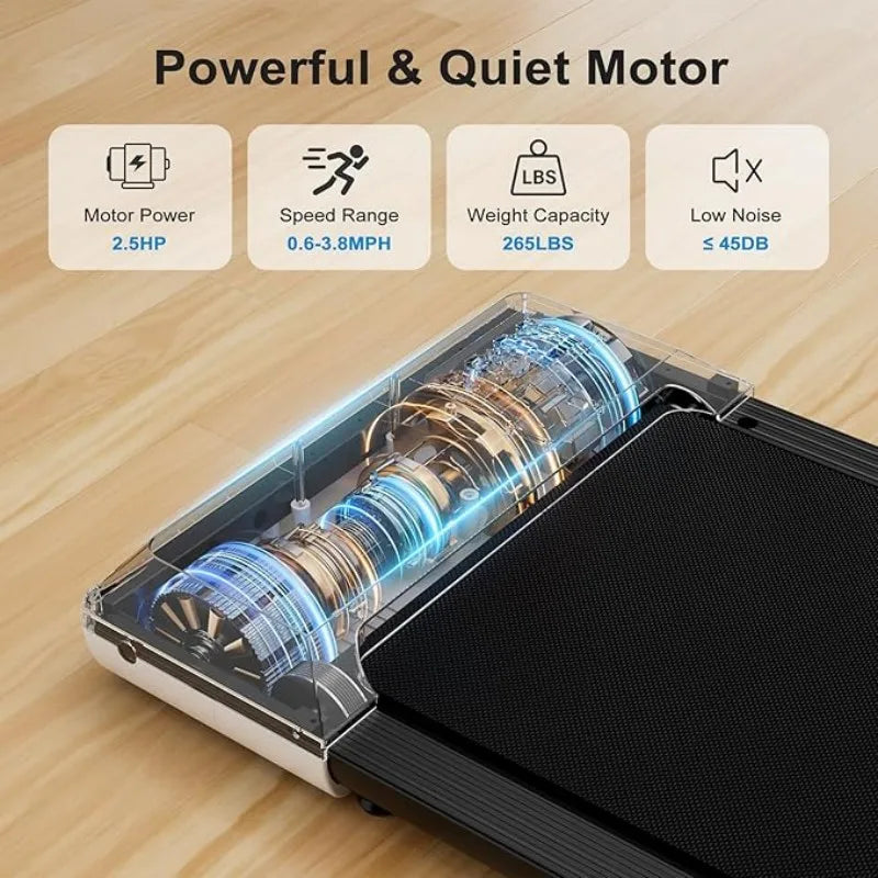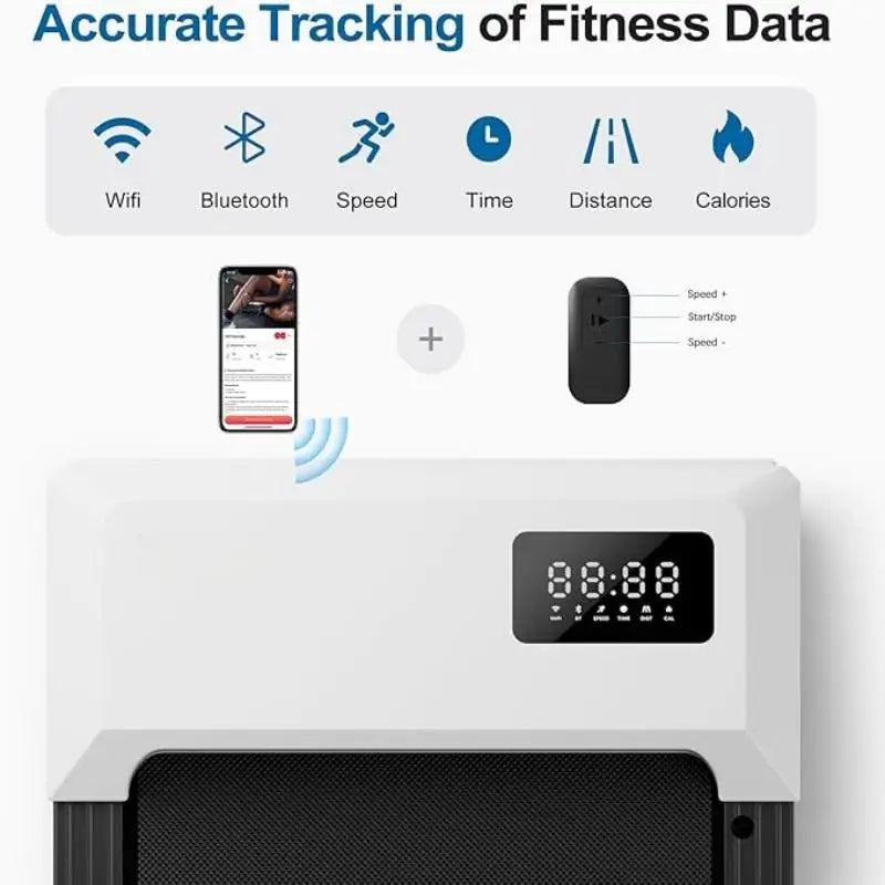 Enkel, tyst och redo att användas direkt! Denna kompakta walking pad är perfekt för dig som vill röra på dig medan du jobbar, lyssnar på poddar eller tittar på tv. Med mjuk stötdämpning, LED-display och fjärrkontroll får du en trygg och bekväm träningsupplevelse – varje dag.