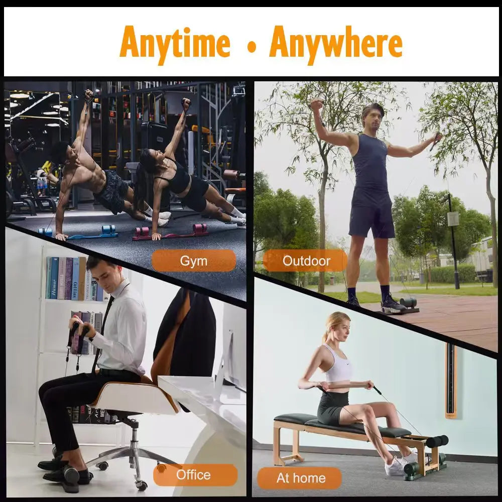 Upplev nästa nivå av hemmaträning med vår avancerade 10-i-1 träningsmaskin. Denna smarta och portabla gymutrustning kombinerar funktionerna från skivstång, hantlar, roddmaskin, pilatesutrustning, kabeldrag, boxning och mycket mer – allt i ett enda kompakt system. Perfekt för dig som vill träna effektivt hemma utan att behöva ett helt gym.