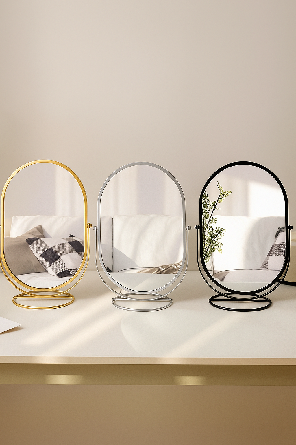 Iron Art 360° Roterbar Smink Spegel – Ovalt Skrivbords spegel i Lyxig Metallram