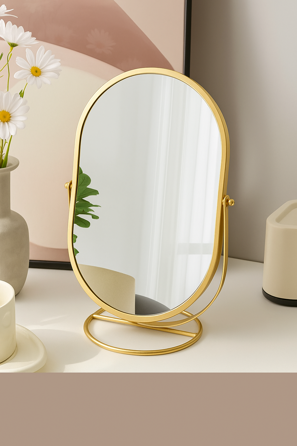 Iron Art 360° Roterbar Makeup Spegel – Ovalt Skrivbordsspegel i Lyxig Metallram