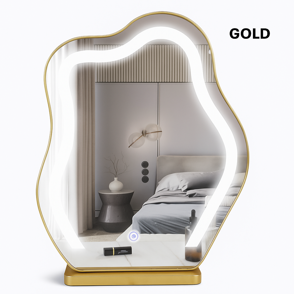 Makeup Spegel med LED-ljus – Intelligent & Lyxig Design i Oregelbunden Form